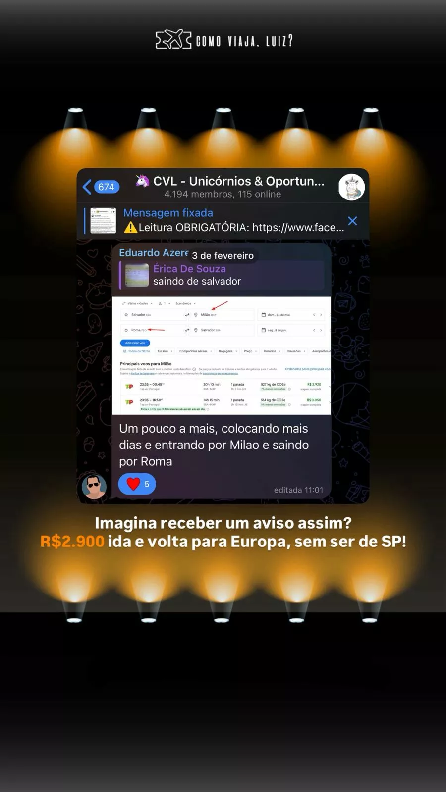 Um grupo de unicórnios e oportunidades, outro espaço exclusivo onde os membros se avisam sobre passagens unicórnios (aquelas passagens extremamente baratas) ou grandes oportunidades de compra e que você poderá aproveitar!