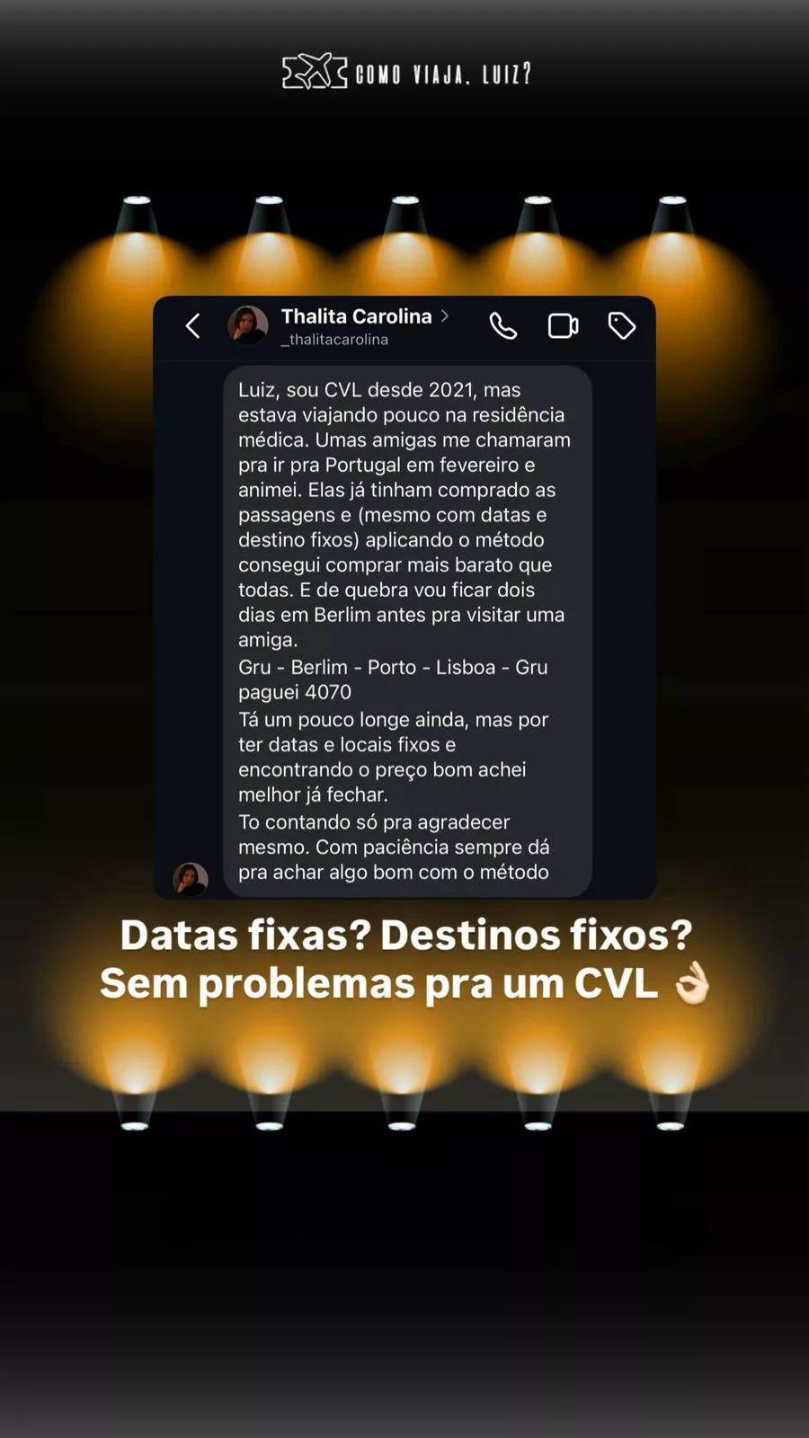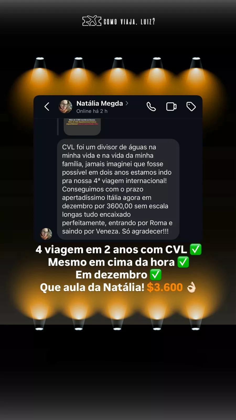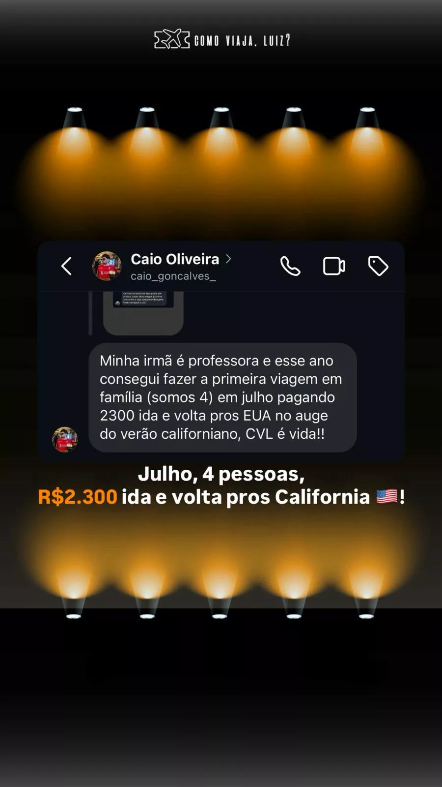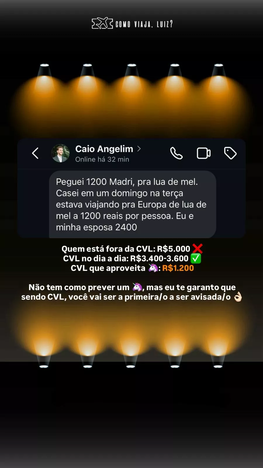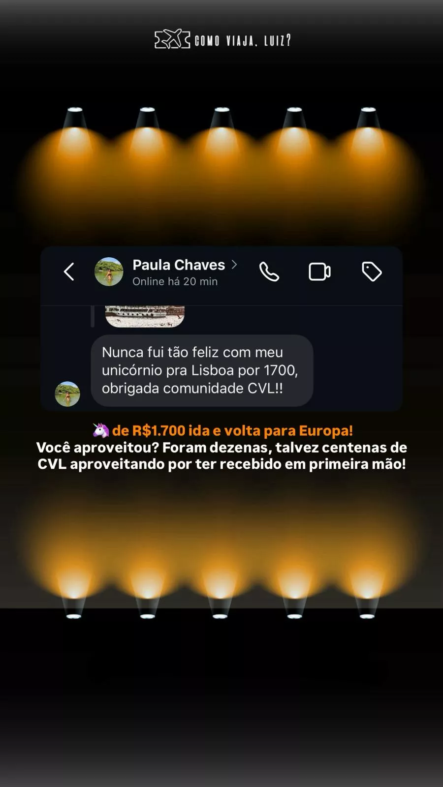 CVL são as iniciais de Como Viaja, Luiz?