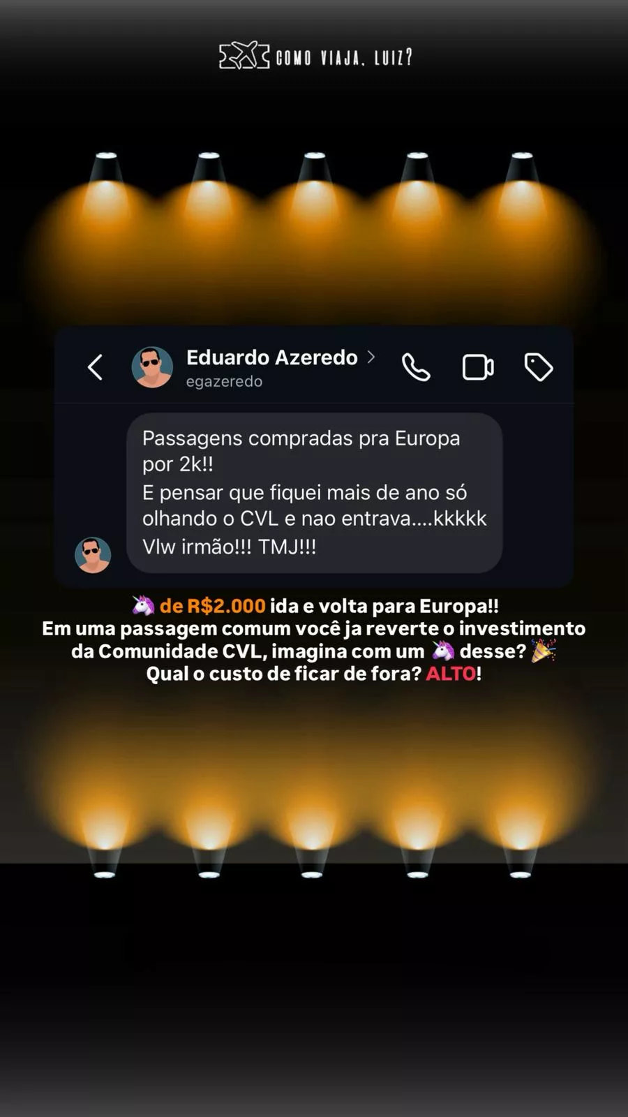 Compartilhando sua paixão e conhecimento, Luiz fundou a Comunidade CVL em 2020. Além de um curso abrangente, a comunidade oferece um fórum de suporte e um grupo de alertas para manter os membros atualizados sobre oportunidades imperdíveis em passagens aéreas.